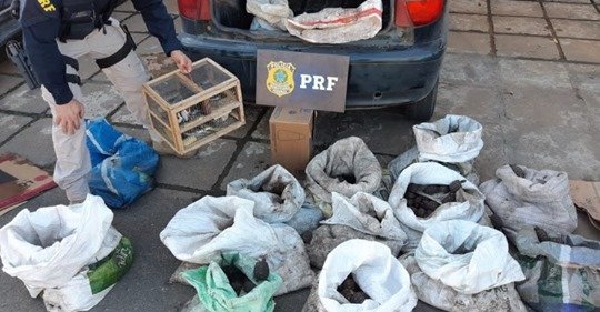 Polícia Rodoviária federal apreende 1.459 filhotes de jabutis e vários pássaros em Leopoldina
