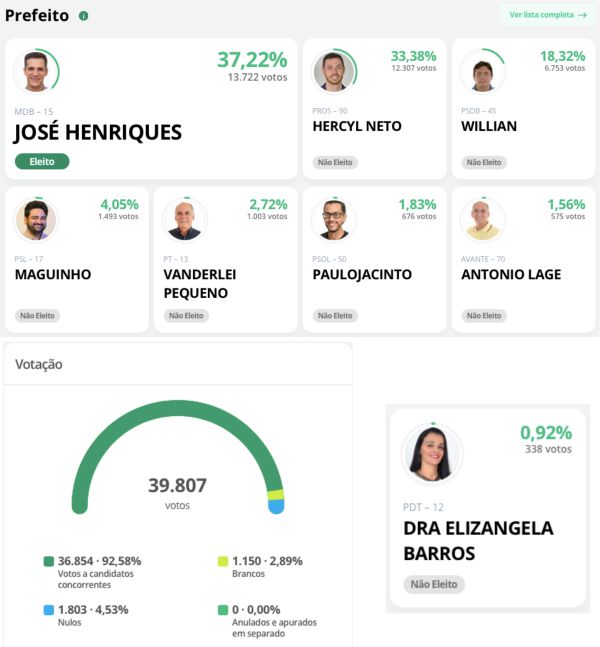 Resultado oficial para prefeito e vereador em Cataguases de acordo com o TSE.