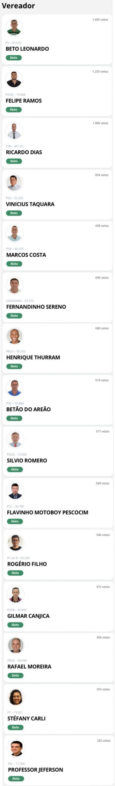 Veja também a relação oficial dos quinze vereadores eleitos.