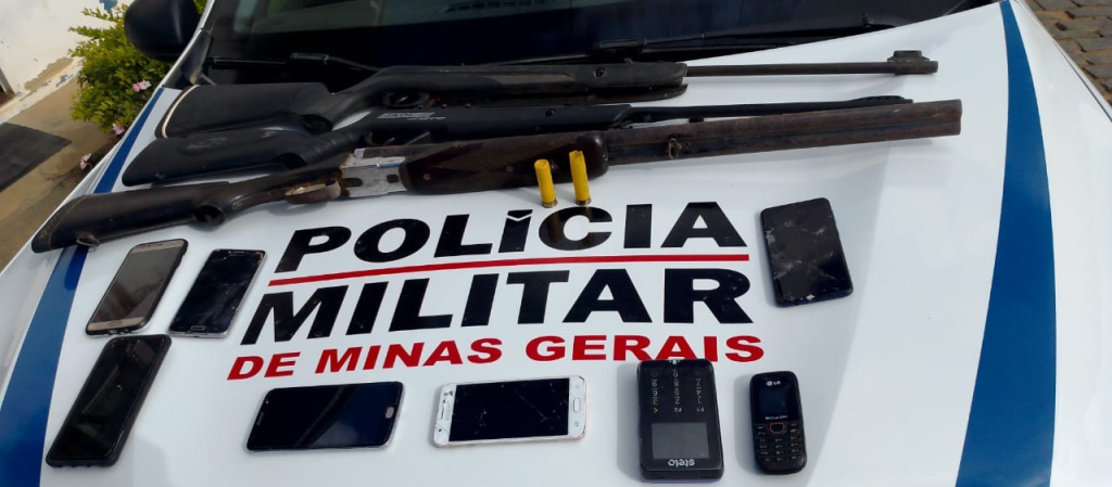 Em cumprimento a seis mandados de busca e apreensão, resultado de investigações inerentes a roubo de gado na região, os 17 policiais que participaram da operação prenderam quatro pessoas (LMS, 39 anos; AP, 65 anos; AV, 38 anos; e MNSC, 19 anos), apreenderam 01 arma de fogo calibre 12, duas espingardas, uma machadinha, oito celulares, pássaros silvestres e várias anotações referentes a venda de gado.