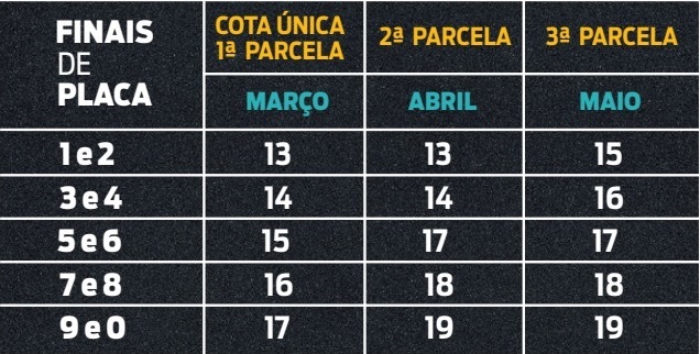 Quem optar por quitar o imposto em cota única terá desconto de 3%. Já o contribuinte que preferir dividir o valor devido, pode pagar em três parcelas, nos meses de março, abril e maio.