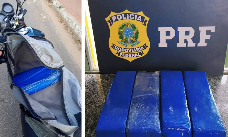 Devido ao nervosismo e agitação demonstrados pelo condutor, foi realizada uma revista na mochila que ele carregava, ocasião em que foram encontrados quatro tabletes de maconha, totalizando 2,5 kg.