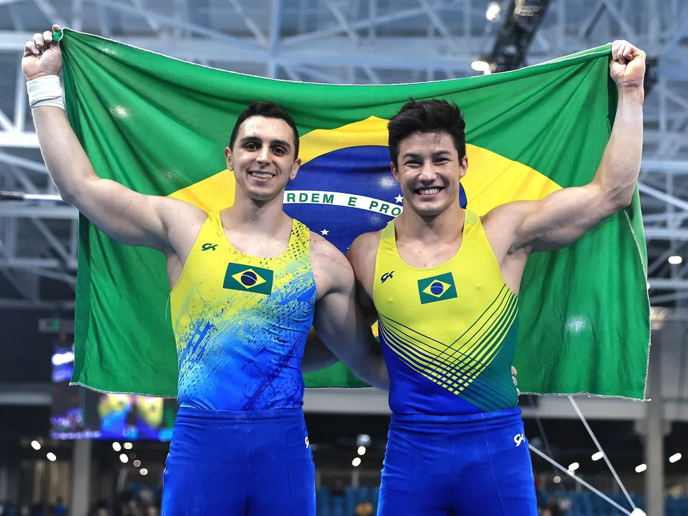 Ontem (25) foi uma quarta-feira dourada para o Brasil. Rebeca Andrade, na trave, e Arthur Nory, na barra fixa, conquistaram a medalha de ouro, nos Jogos Pan-Americanos de Santiago, no Chile. E ambos fizeram uma dobradinha: Flavinha Saraiva e Bernardo Miranda ficaram com a prata e festejaram com os compatriotas.