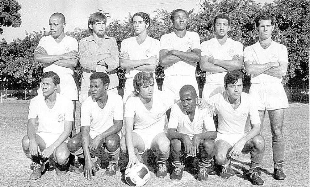 Esta é a equipe do Esporte Clube Santa Maria, ano de 1973, em uma apresentação no Estádio Municipal pelo Campeonato de Além Paraíba promovido pela LDAP. Em pé: Didi, Ricardo Rogério, Jorge Eduardo, Braz, João Paulo e Getúlio Taranto. Agachados: Chumbinho, Dirlei, Errol, Bolão e Tuíca. Bons tempos de um futebol de excelência que ainda era jogado nas boas terras alemparaibanas.