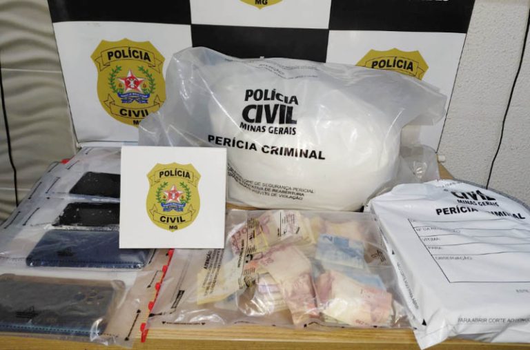 A Polícia Civil de Minas Gerais (PCMG) prendeu, na semana passada, sexta-feira (14), em Leopoldina, uma mulher de 41 anos e um homem de 20, durante cumprimento de mandado de busca e apreensão no bairro São Cristóvão. A ação resultou na apreensão de aproximadamente 10 quilos de substância análoga à cocaína, além de dinheiro, celulares e uma motocicleta.