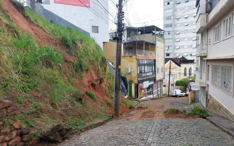 Chuva alaga ruas e provoca queda de barreiras em Leopoldina